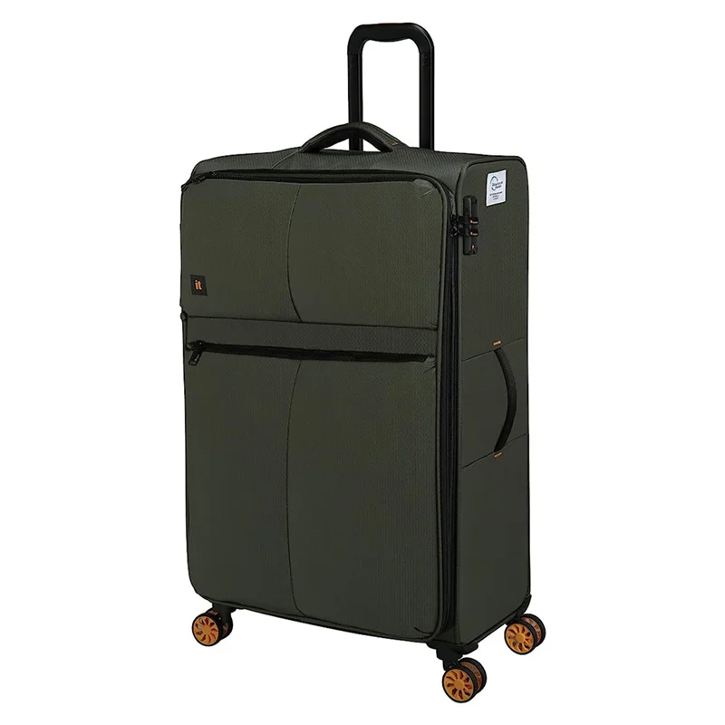چمدان آی تی IT یک برند انگلیسی هست که چمدان Lykke جزء جدید ترین کالشکن های این برند میباشد؛ جنس بدنه این چمدات پلی استر 100 درصد میباشد که مانع نفوذ آب شده و همچنین تراکم بافت فوق العاده بالا این جنس از چمدان باعث مستحکم تر شدن چمدان میشود. از دیگر مشخصات این چمدان میتوان به قفل ضد سرقت و بین المللی tsa،زیپ نمره ده ، زیپ افزایش حجم ،چرخ های دابل چرخش 360 درجه سایلنت بسیار روان و دسته الومینیوم اشاره کرد. اما مهم ترین ویژگی این چمدان وزن فوق العاده سبک آن میباشد که میتوان با جرات گفت جزء سبک ترین چمدان های حال حاضر میباشد.