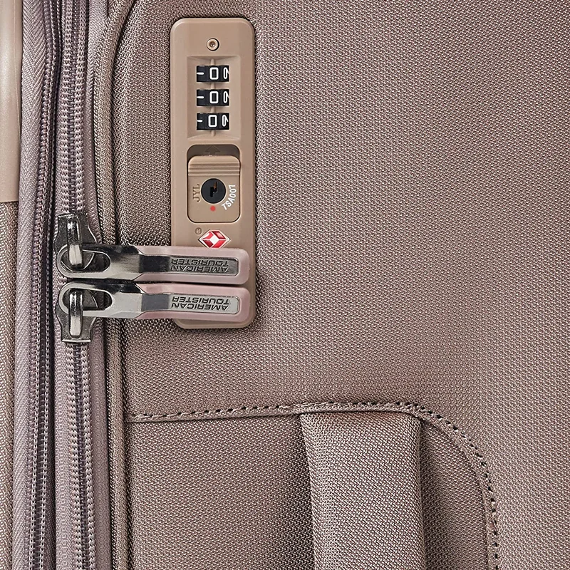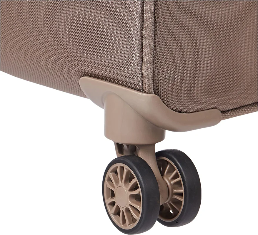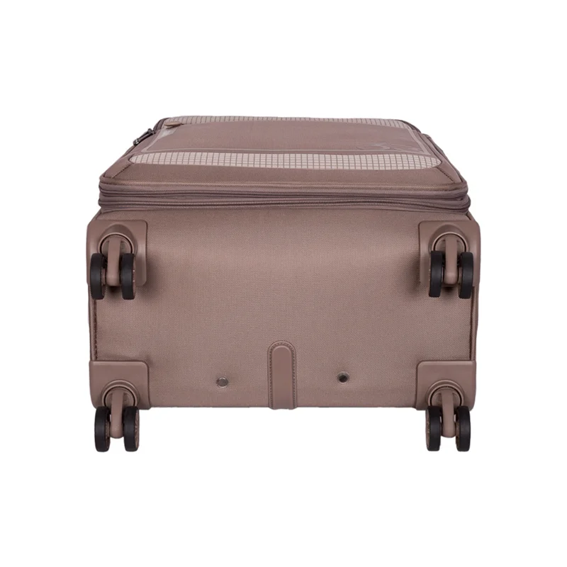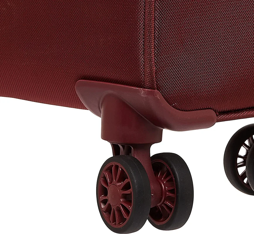 جنس بدنه این چمدان از پلی استر 100 درصد میباشد و تراکم بافت فوق العاده بالایی دارد که سبب ضد آب بودن چمدان میشود. همچنین کلاف و یا فریم این چمدان فنر کار شده است که به هیچ عنوان د فرمه نمیشود و همچنین وزن این چمدان نیز فوق العاده سبک میشود. چرخ های این چمدان 360 درجه و بسیار روان می باشند . همچنین چرخ ها از پلاستیک تزریقی ساخته شدند تا بر اثر ضربه شدید آسیب نبینند.